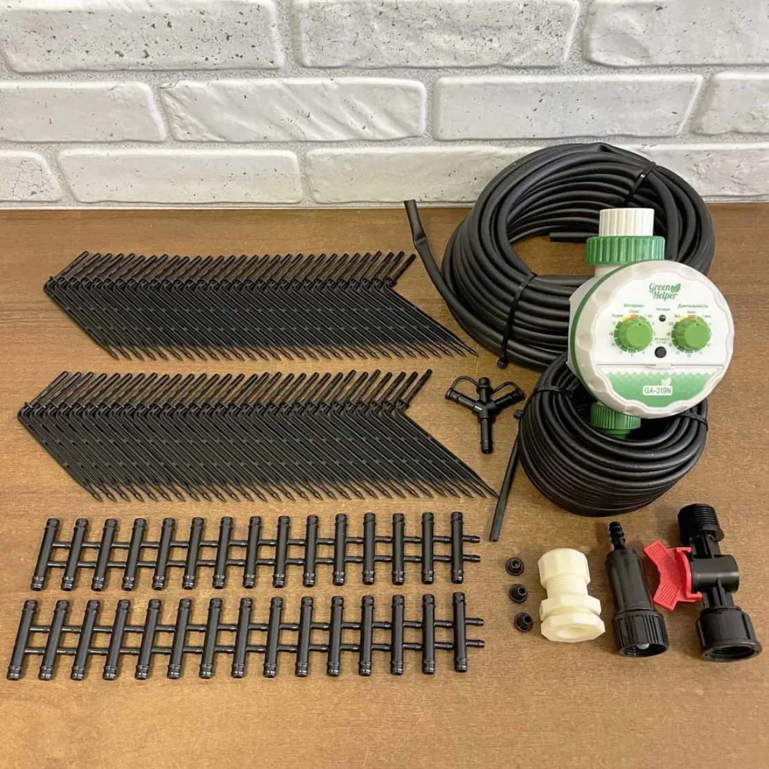 | Комплектация | Таймер полива Green Helper GA-319N; Подающий шланг 7/9 мм - 18 метров; Шланг для капельниц 4/6 мм - 12 метров; Большой разветвитель с пробкой; Малый разветвитель - 30 шт; Капельница - 60 шт; Заглушка для подающего шланга - 3 шт. |