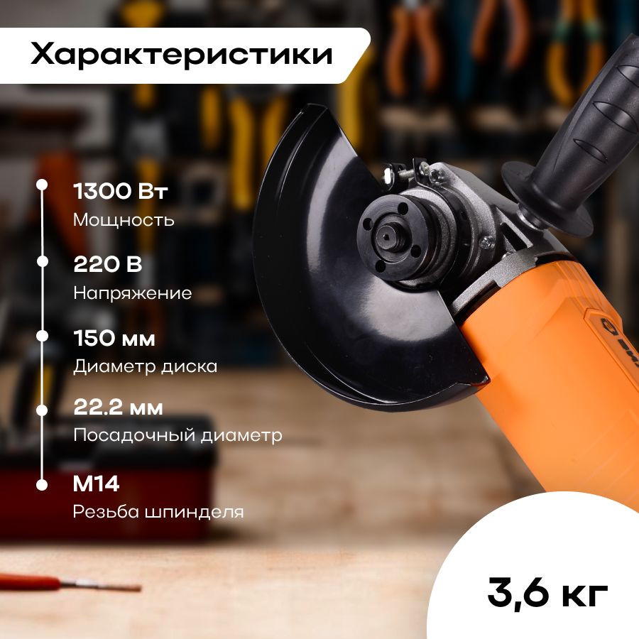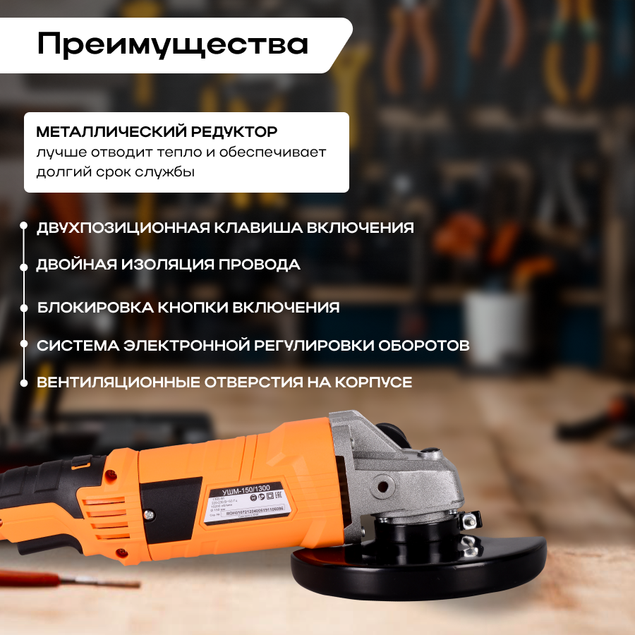 Углошлифовальная машина (болгарка) УШМ-150/1300 Вихрь, 1300Вт, 150мм интересное: