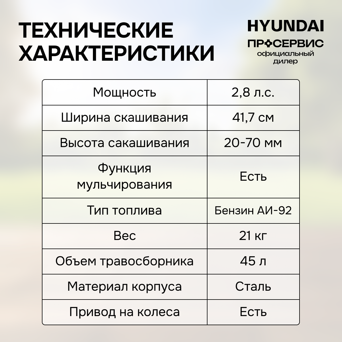 HYUNDAI [L 4220S] Бензиновая газонокосилка {самоходная, двигатель Hyundai ICV100,4-х такт, 2.8 л.с./99.8 см3, Ширина