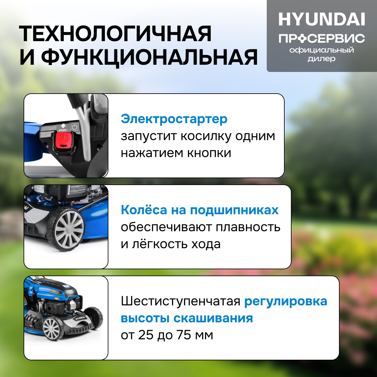 СохранитьГазонокосилка Hyundai L4610SE, 25 - 75мм, 45.7см, 6 уровней, 0.9л, 35кг интересное: