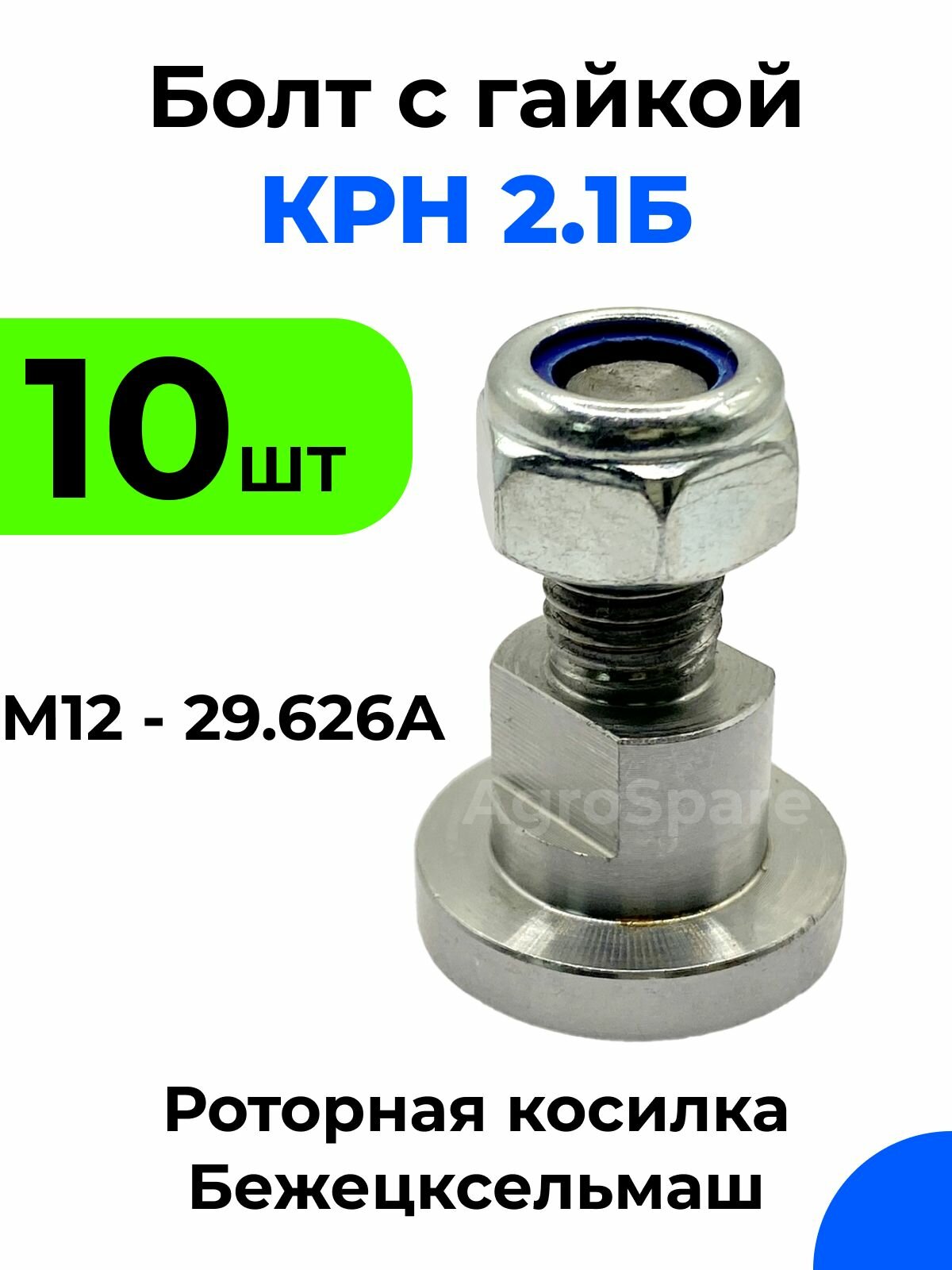 Купить Болт крепления ножа с гайкой Бежецкой роторной косилки КРН 2,1Б М12 - 29,626А / Болт - 10шт, гайка - 10 шт.