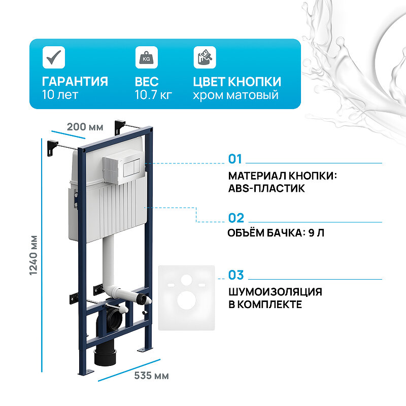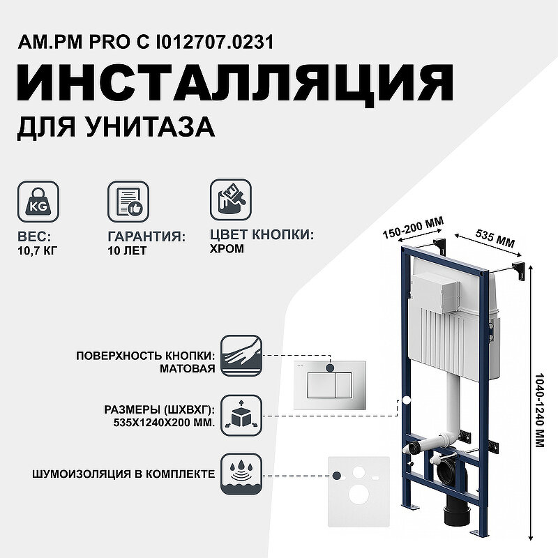 Инсталляция AM.PM ProC S I012707.0201 комплект 4 в 1: инсталляция для унитаза, механическая кнопка ProC S глянцевый белый, шумоизоляция, крепления