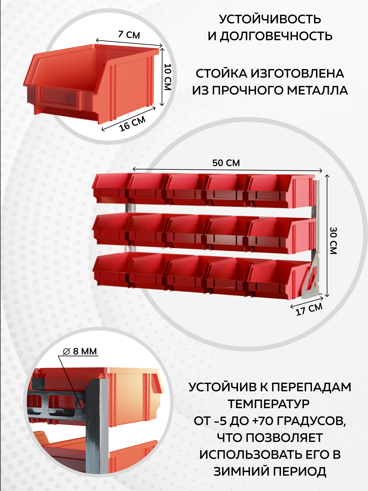| Плюсы: | Можно разложить в мастерской саморезы по размерам. |