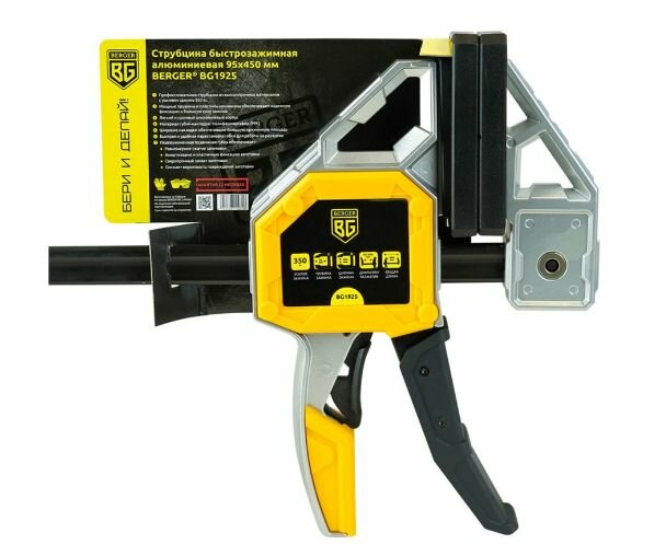 Купить Струбцина BERGER BG1925 быстрозажимная алюминиевая 95*450мм