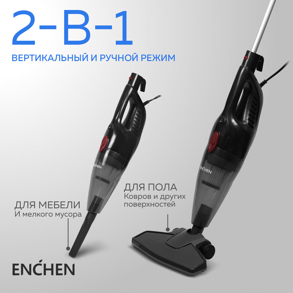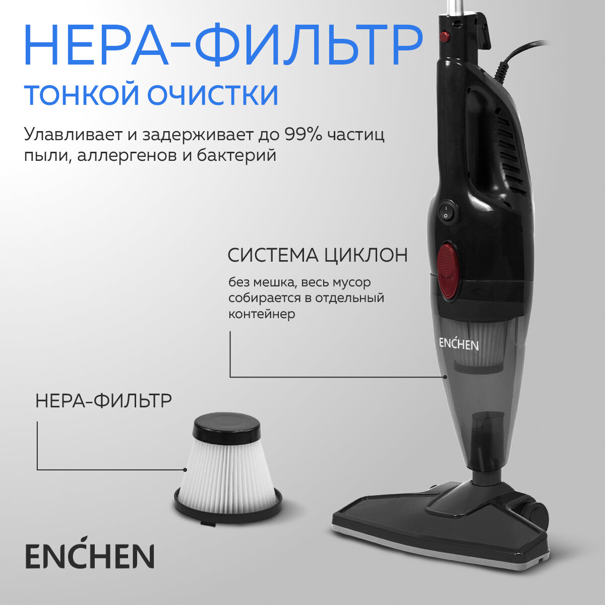 Вертикальный пылесос для дома 2 в 1 Enchen Vacuum Cleaner V1 черный, вертикальная парковка, сетевой шнур 5 метров