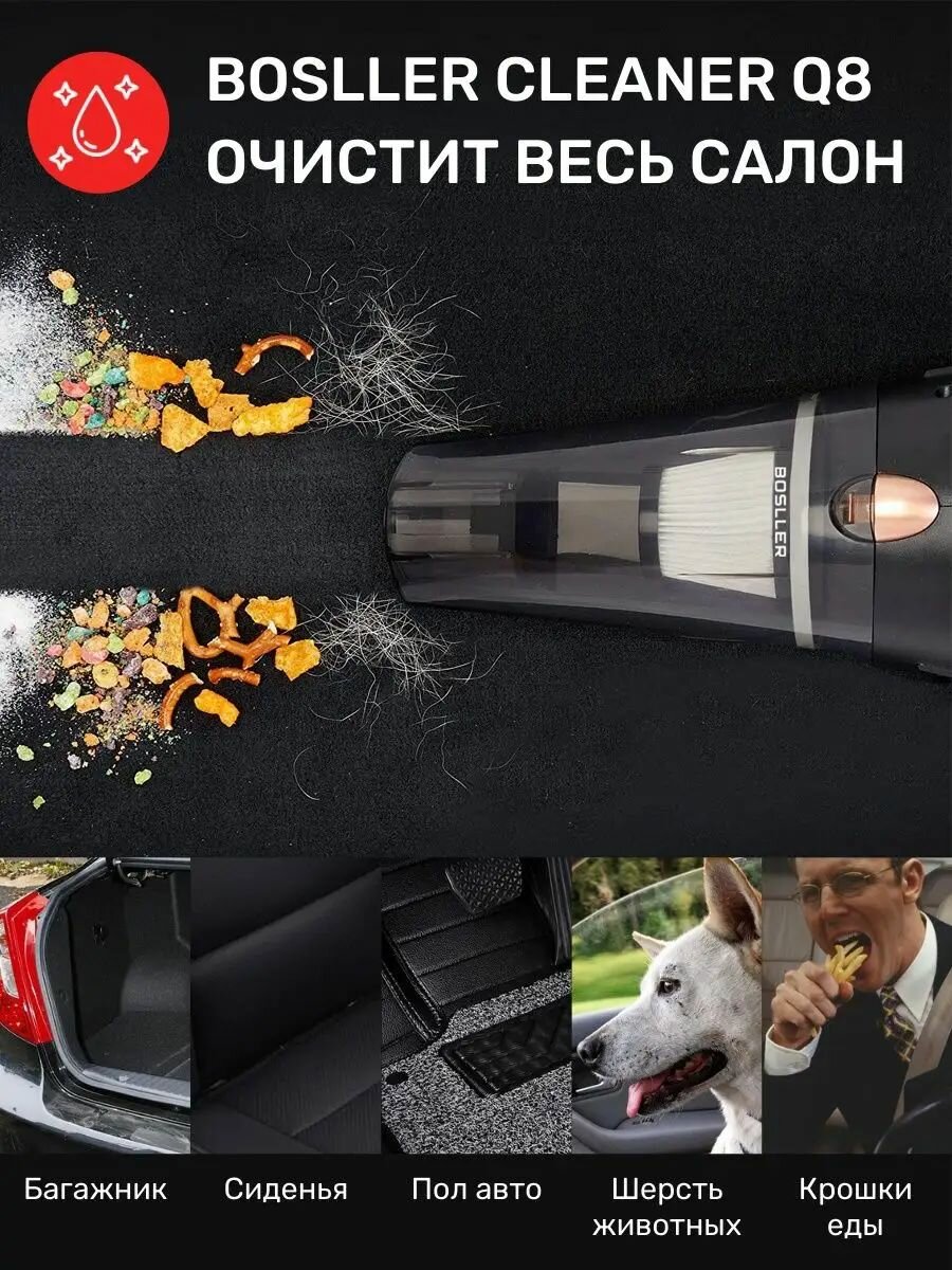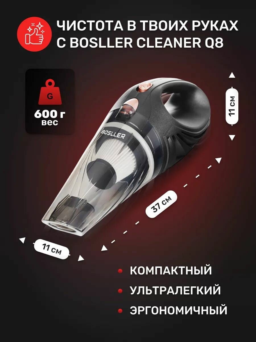 Мощный пылесос для автомобиля BOSLLER Cleaner Q8 с сумочкой, ручной автопылесос работает от прикуривателя интересное: