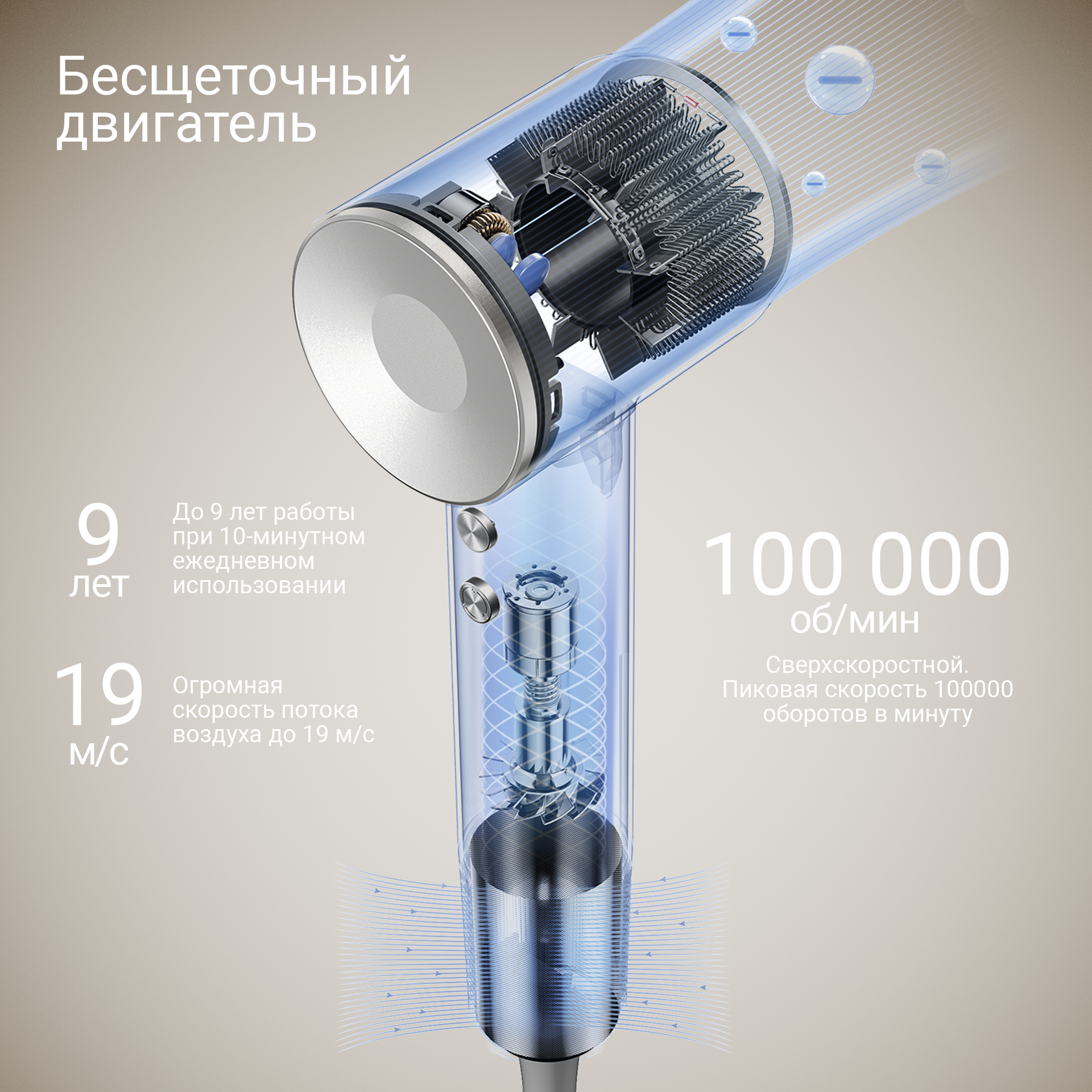 Фен для волос с ионизацией Laifen Swift SE Lite с насадкой-концентратором, кремовый