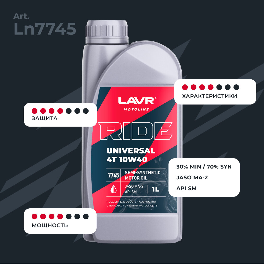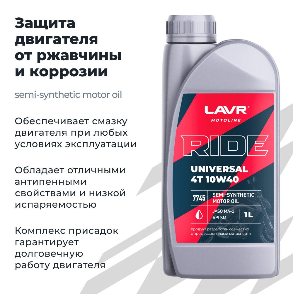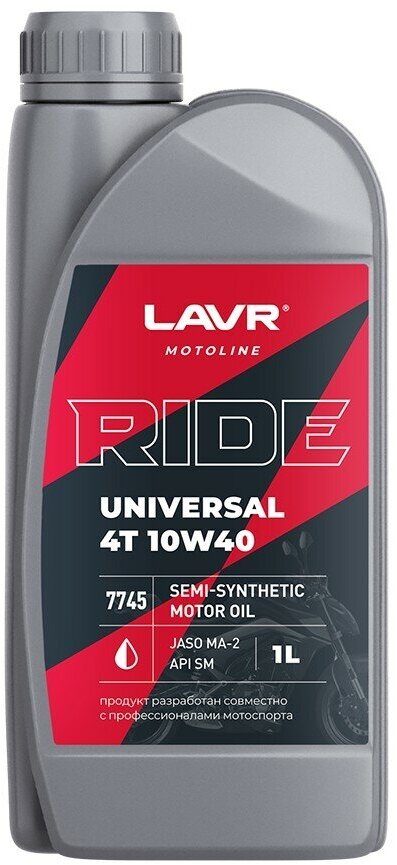 СохранитьМоторное масло для мотоциклов RIDE UNIVERSAL 4T 10W40 SM LAVR MOTOLINE, 1 л / Ln7745 интересное: