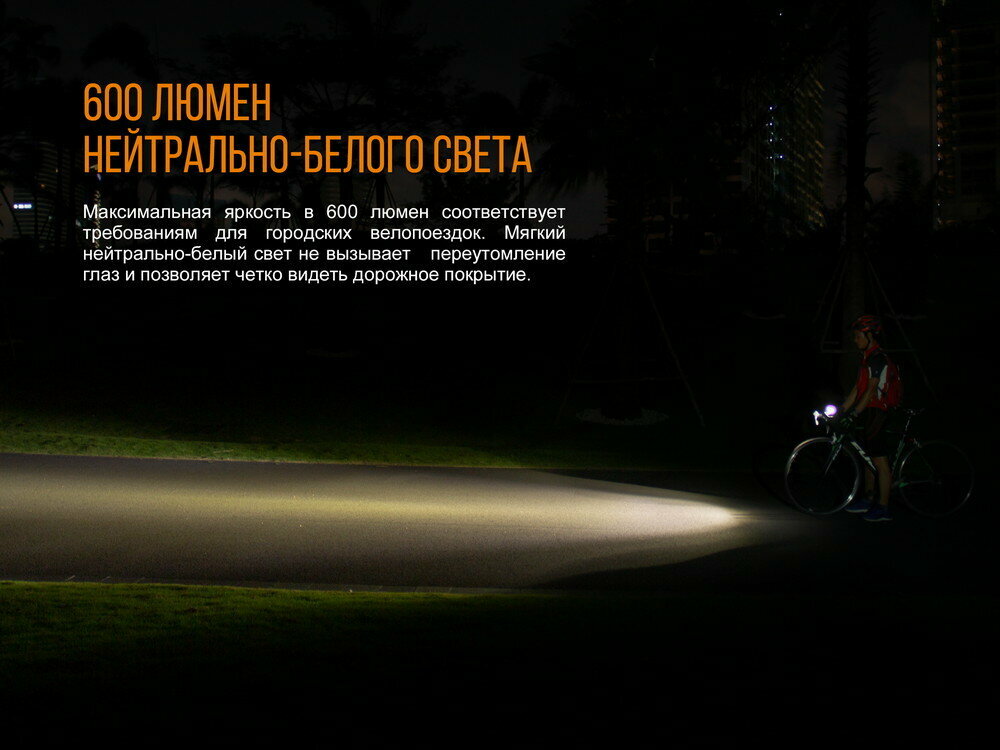 | Отзыв: | Покупал в комплекте с задней фарой Fenix. Крепко держится на руле, встречки не слепит. Яркости 600 люмен хватает ночью, всё видно и катаюсь безопасно. |