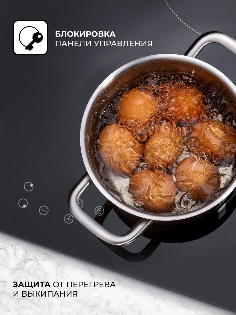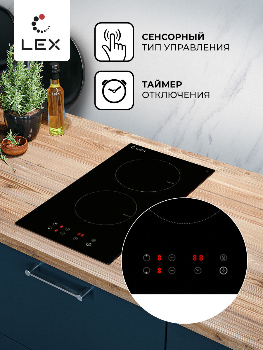 Варочная панель индукционная LEX HI 3020 BL, датчик распознавания наличия посуды, защита от перегрева, индикатор остаточного тепла, кнопка блокировки панели, отключение при выкипании. интересное:
