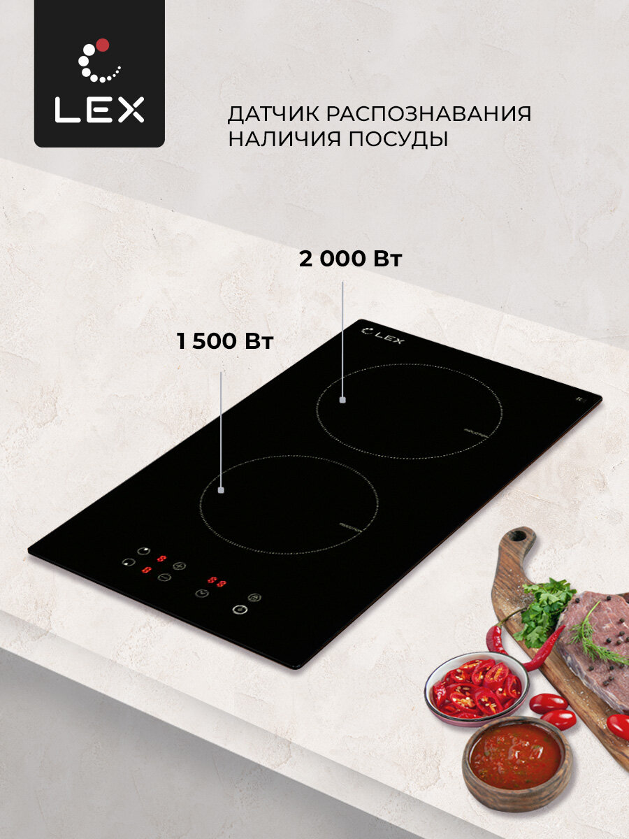 Купить Варочная панель индукционная LEX HI 3020 BL, датчик распознавания наличия посуды, защита от перегрева, индикатор остаточного тепла, кнопка блокировки панели, отключение при выкипании.