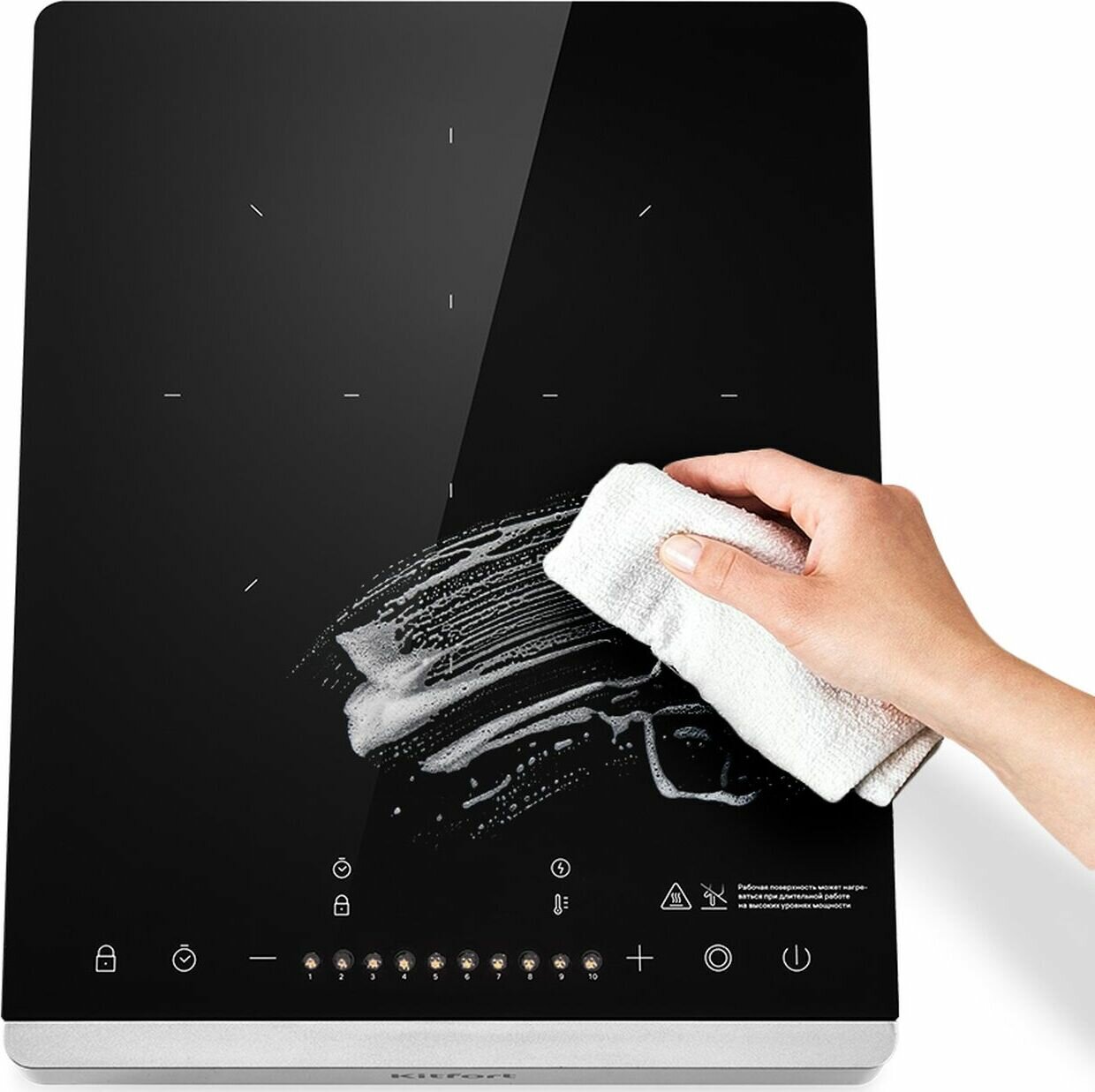 | Плюсы: | Красивый и лаконичный дизайн, эргономичные ручки для переноса плиты, 2 кВт мощности под капотом) |