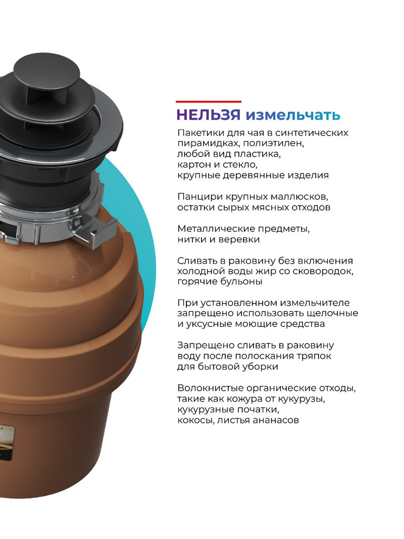 Измельчитель пищевых бытовых отходов AIRHOT FWD-550. 0.550 кВт, 3600 об/мин, 3 стадии перемолки