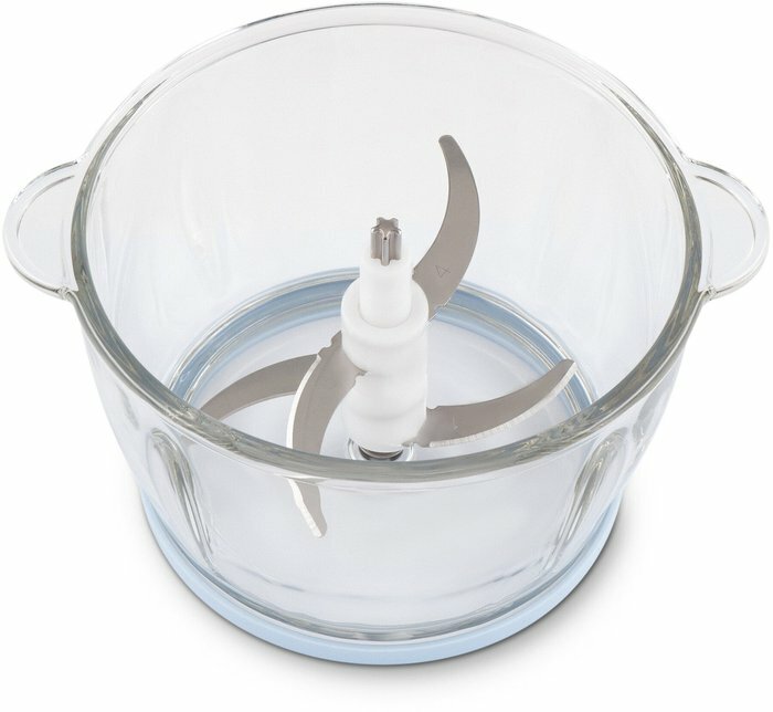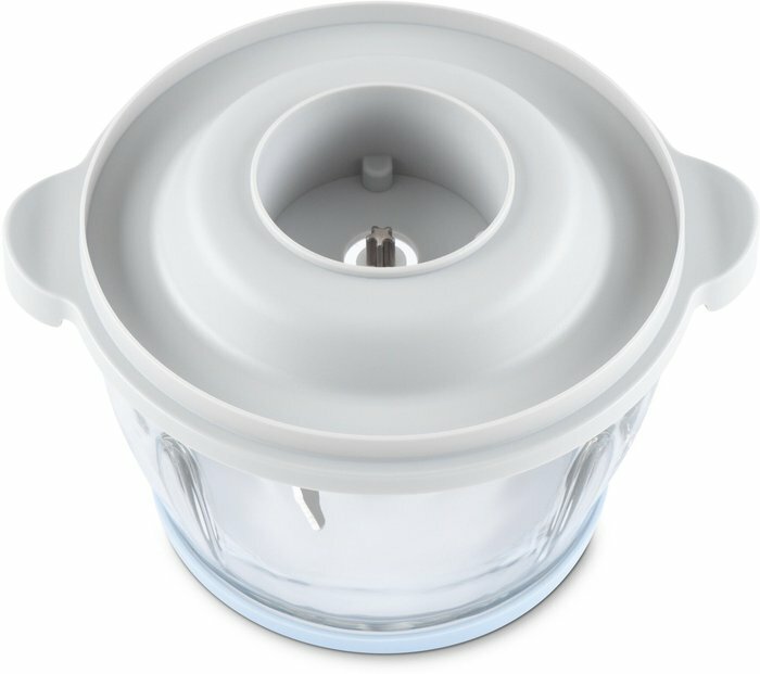 | Плюсы: | Чаша выполнена из стекла. 2 скорости работы. Мощность измельчителя 500 вт. Имеет прорезиненные ножки. |