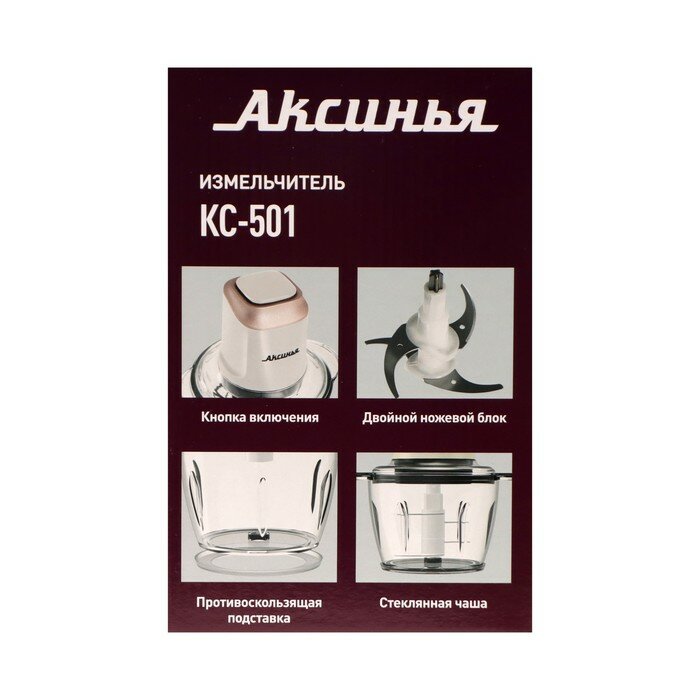 Измельчитель аксинья КС-501, стекло, 400 Вт, 1.2 л, 1 скорость, белый