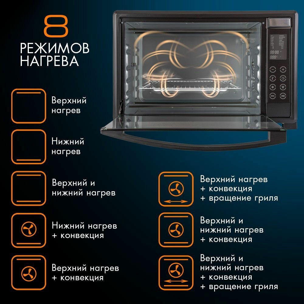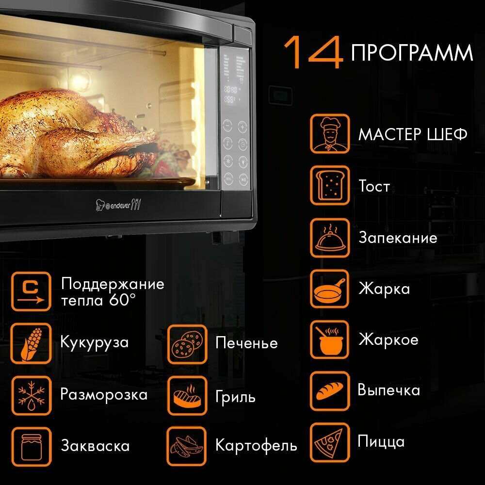 Мини печь электрическая ENDEVER Danko-4045, 2000 Вт, духовка электрическая настольная 45 л, конвенция, 40-230 градусов интересное: