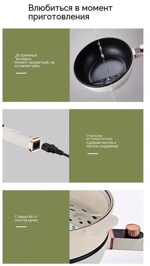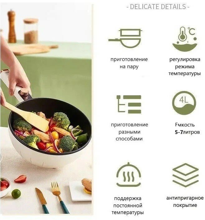 Очень удобно, что всё готовиться в одной ёмкости. Температура переключается очень быстро. Объём чаши достаточно большой. Чаша не съёмная. Покрытие чаши моется очень легко. Ничего не пригорает. Сам котелок очень лёгкий.
