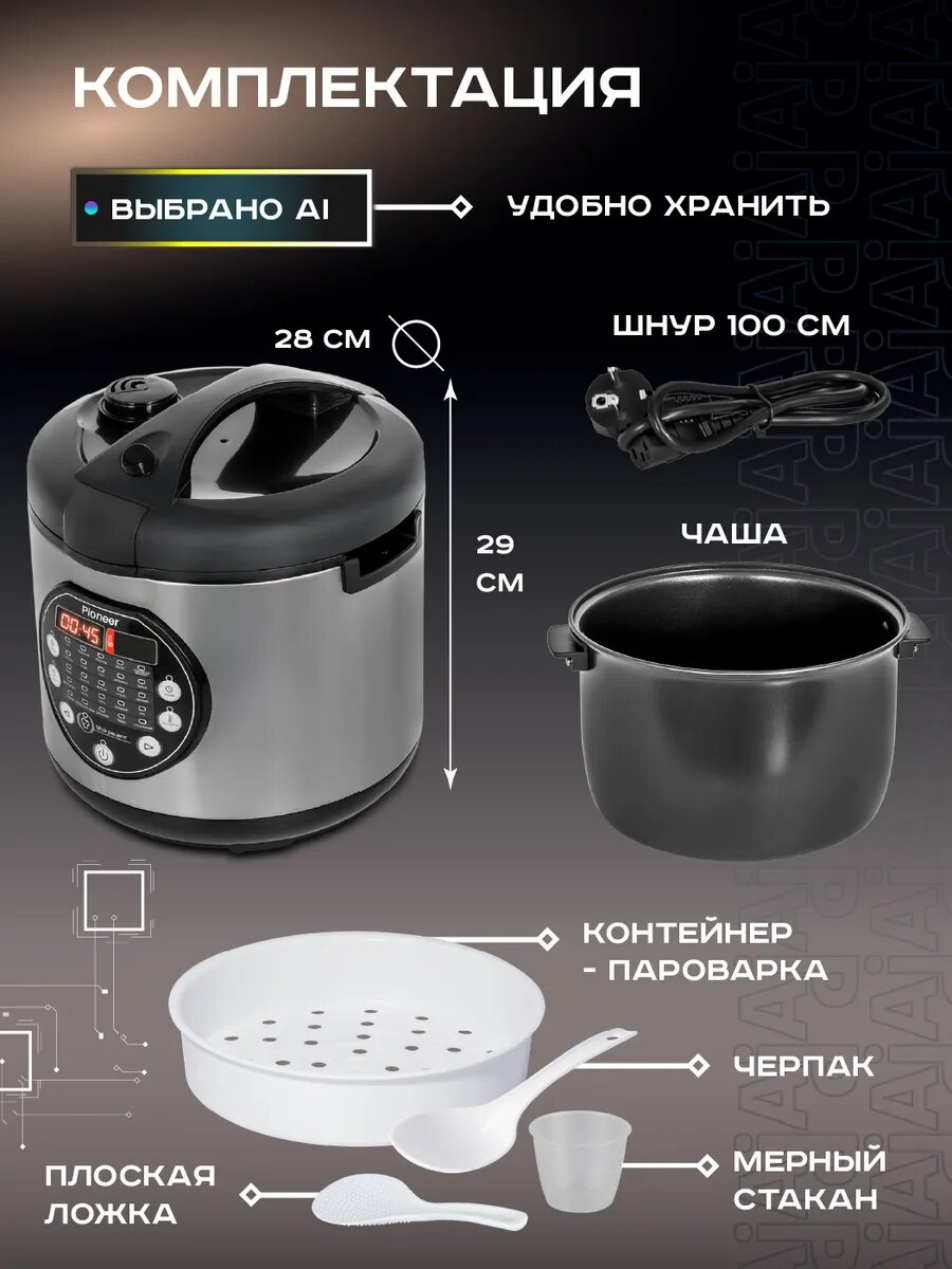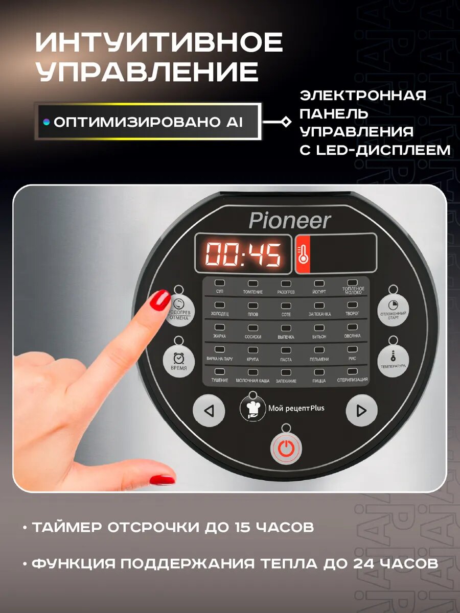 Мультиварка Pioneer MC301 с антипригарной чашей 5 л и LED дисплеем, 25 автопрограмм, 200 режимов, режим "Мой Рецепт", 860 Вт