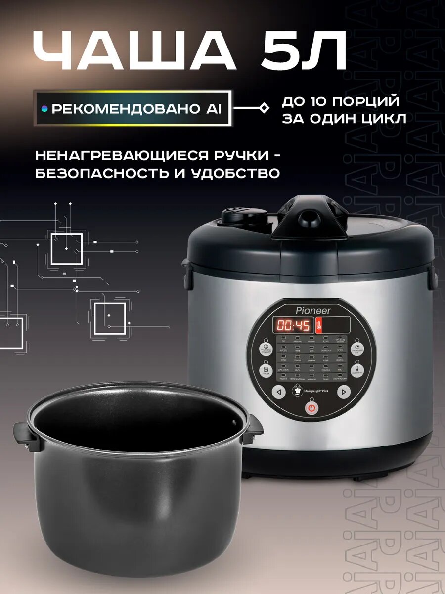 Купить Мультиварка Pioneer MC301, 25 автоматических программ, 200 режимов приготовления, режим "Мой Рецепт", чаша 5 л,860 Вт