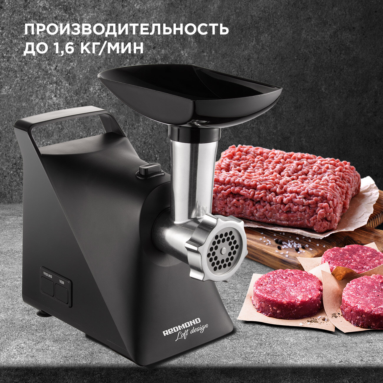 Мясорубка электрическая REDMOND RMG-1247, 2 диска для фарша, насадки для колбасок, реверс, защита двигателя интересное: