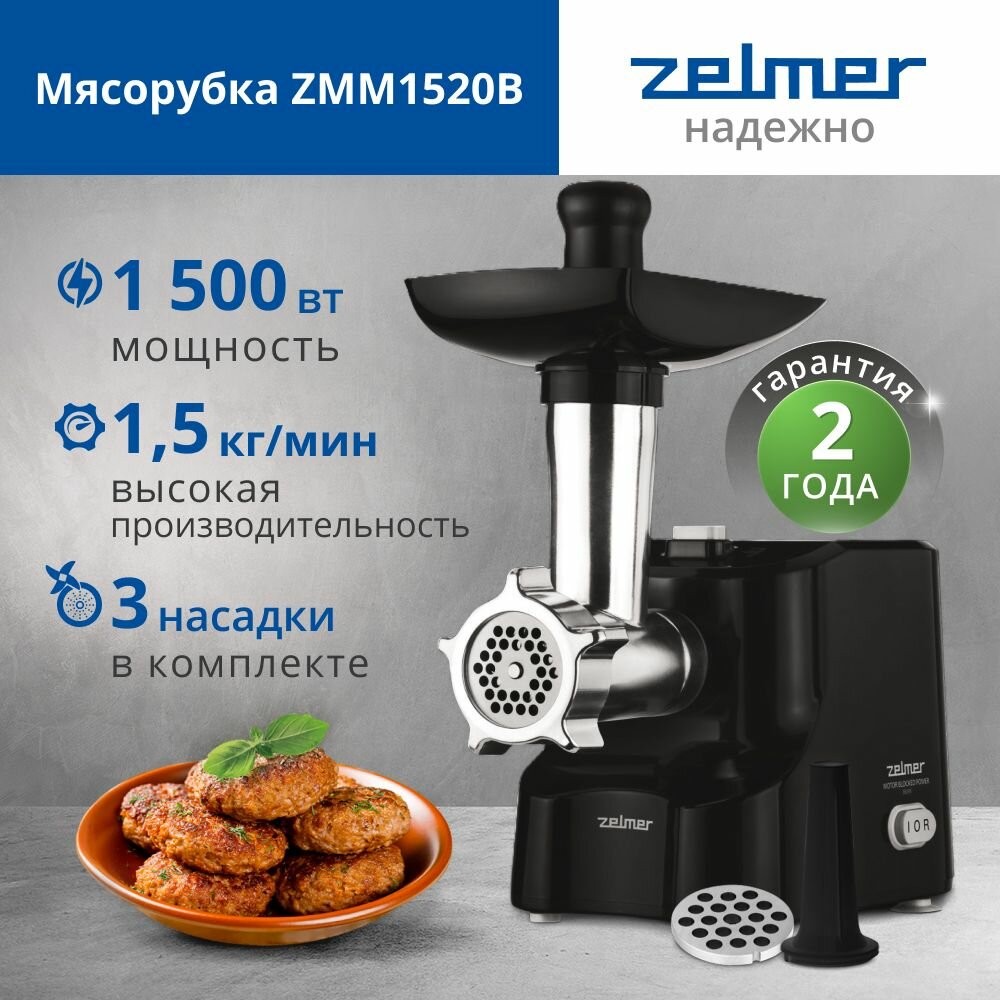Мясорубка электрическая Zelmer ZMM1520B, 3 насадки, 1.5кг в мин, 1500 Вт интересное: