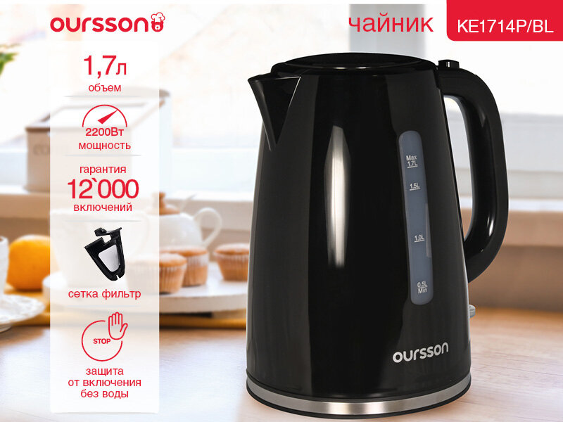 Купить Чайник электрический Oursson KE1714P/BL (Черный)