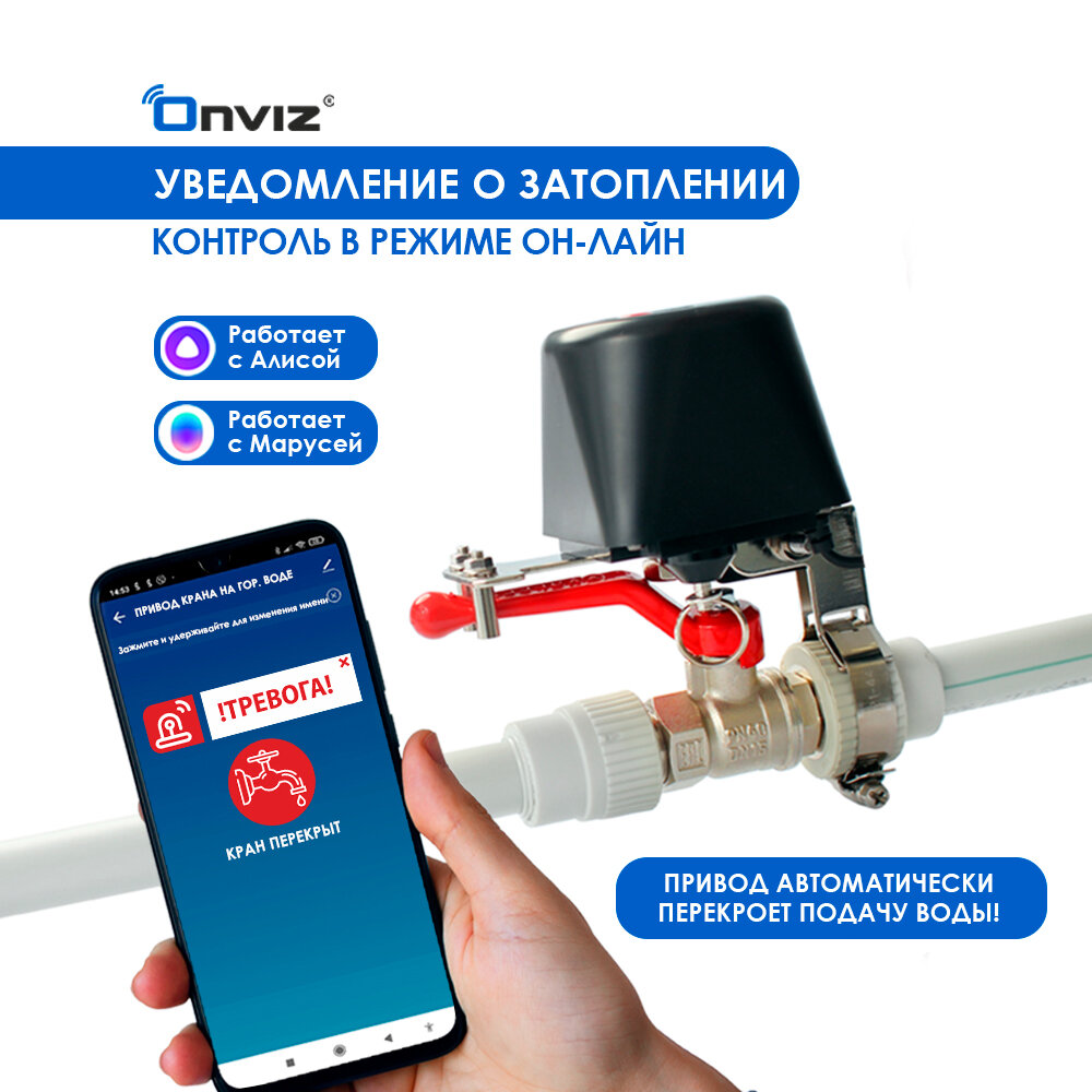 Умная универсальная система защиты от протечек воды Onviz ZigBee, G1/2, G3/4, с беспроводными датчиками, Алиса, Маруся интересное: