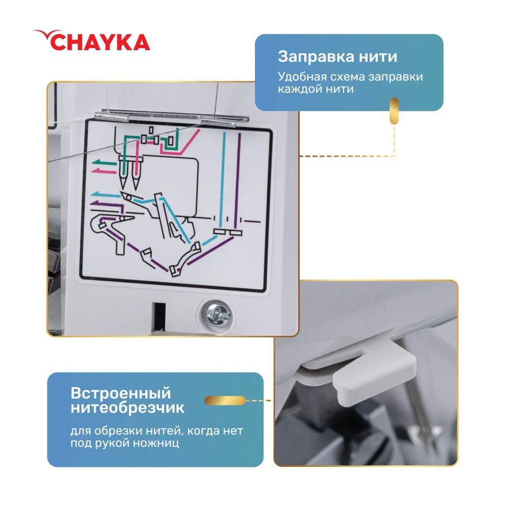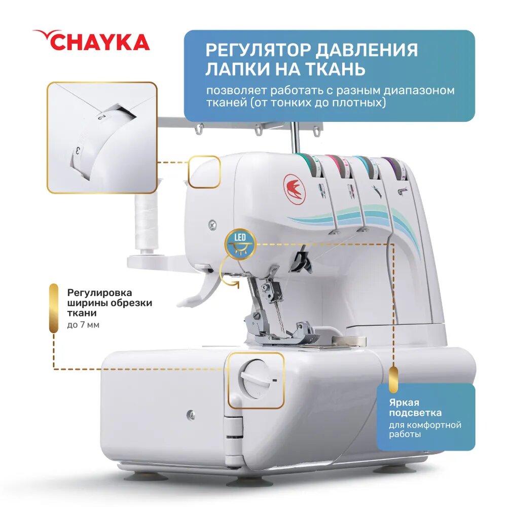 Оверлок CHAYKA NEW WAVE 777, 2/3/4 - ниточный, 12 видов швов, мощность 100Вт интересное: