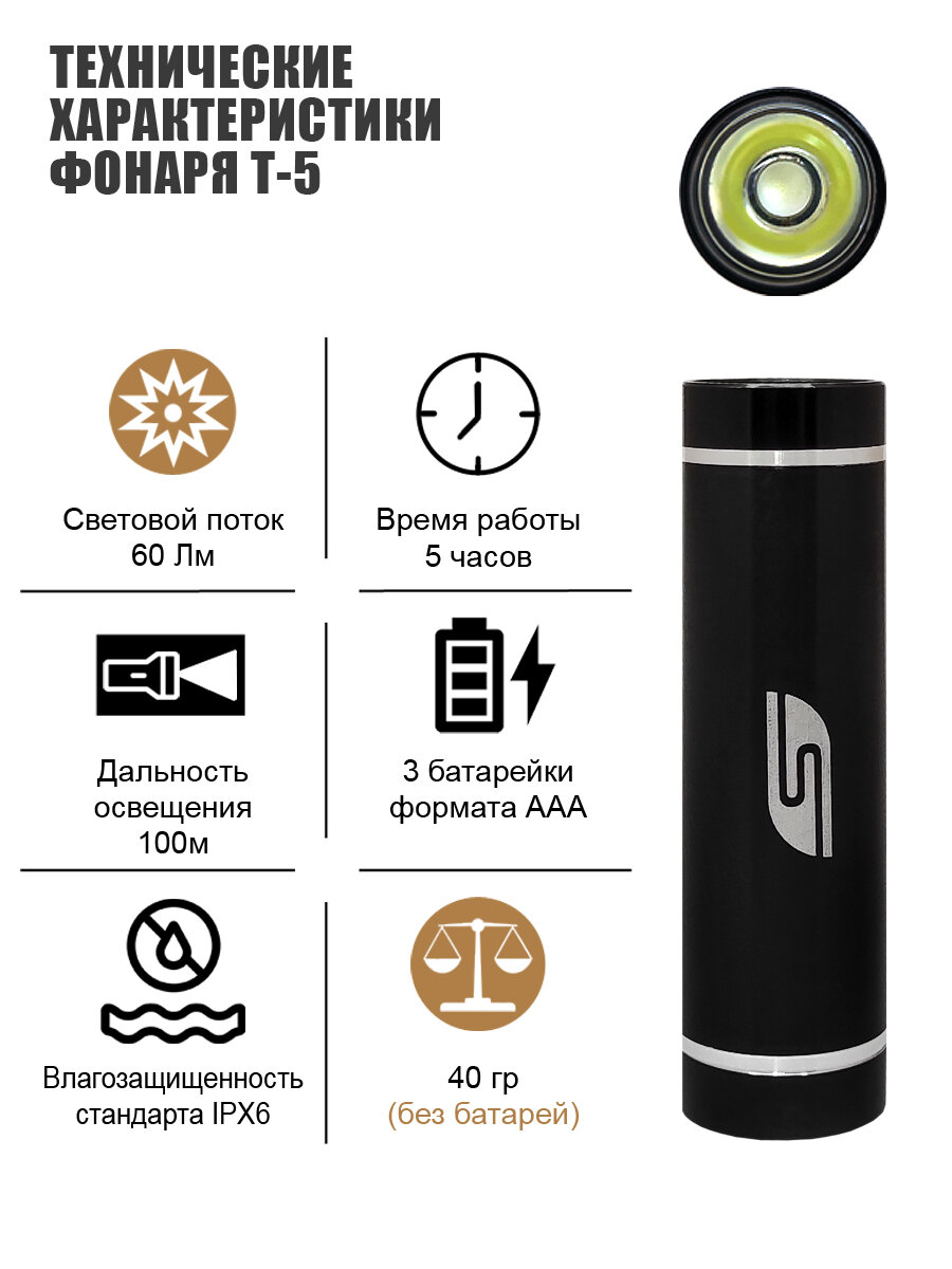 Фонарь SOLARIS T-5V велосипедный светодиодный черный интересное: