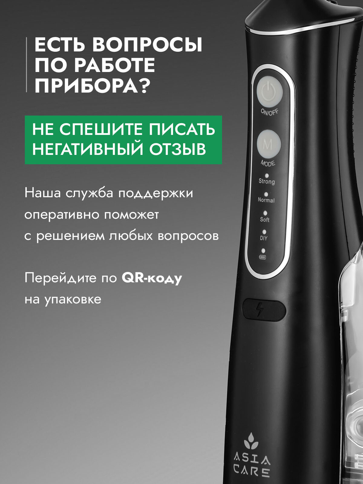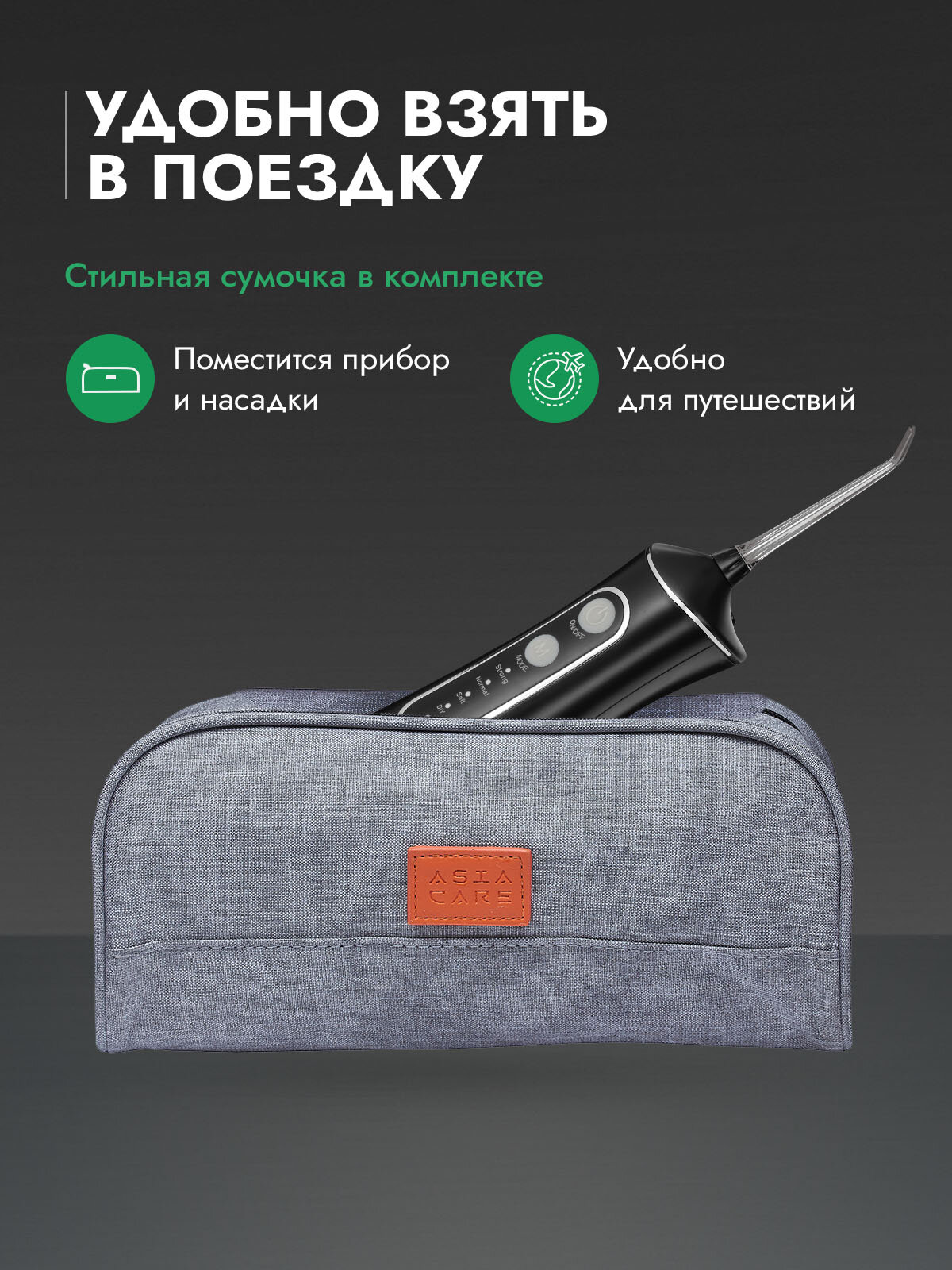 Ирригатор для полости рта портативный Asia Care PRO, 14 насадок, прибор для чистки брекетов, языка, коронок, имплантов, черный