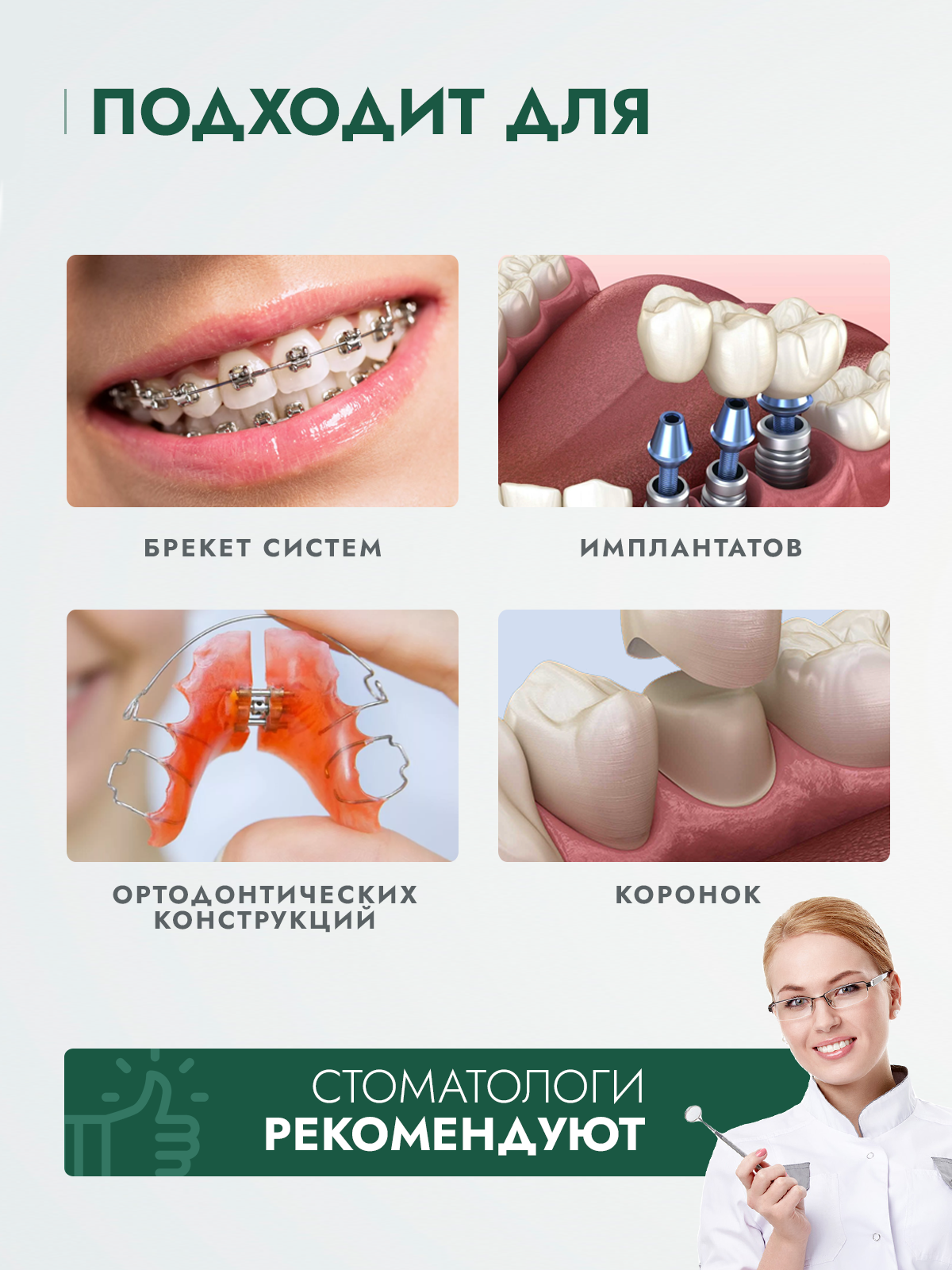 | Плюсы: | Отлично вымывает из под имплантат остатки пищи, довольна очень |
