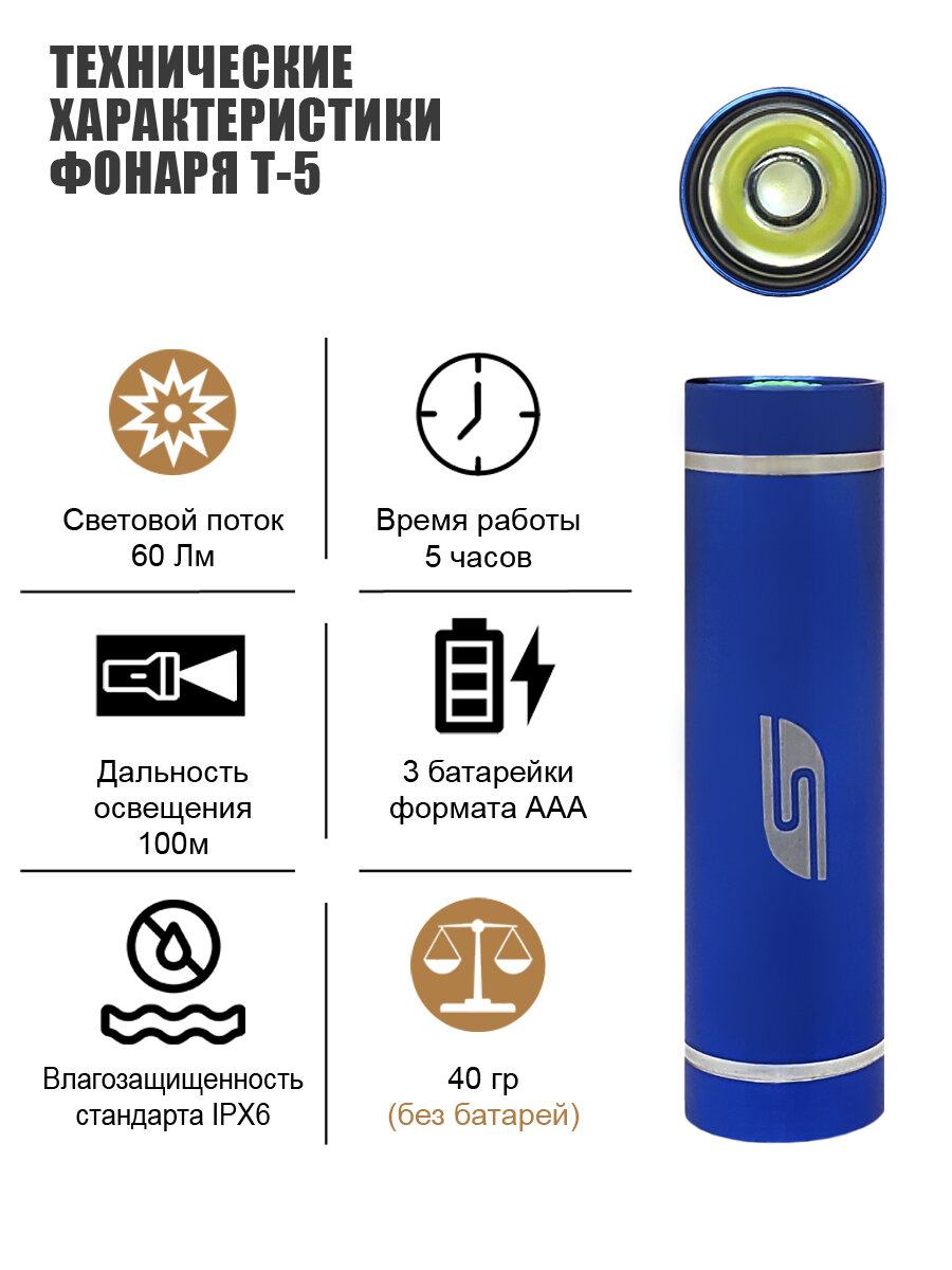 Фонарь SOLARIS T-5V велосипедный светодиодный синий интересное: