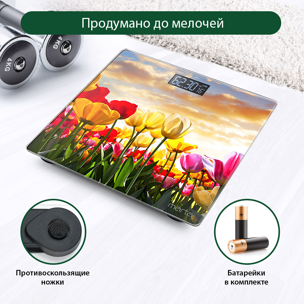 Весы напольные MARTA MT-1678 тюльпаны интересное: