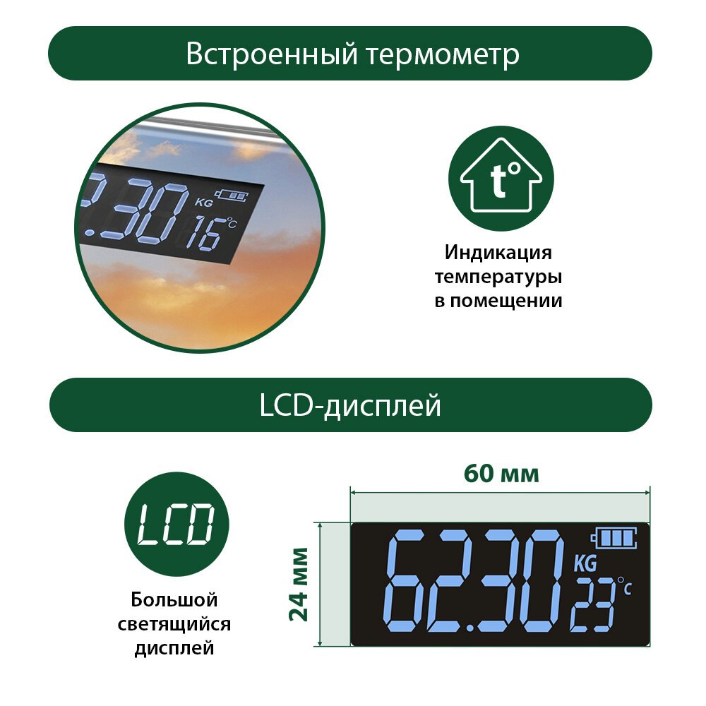 | Отзыв: | Электронные весы - отличное приобретение! Они точные, удобные и надежные. Легко читаемый дисплей, автоматическое выключение для экономии батареи, их удобно хранить благодаря компактным размерам. |