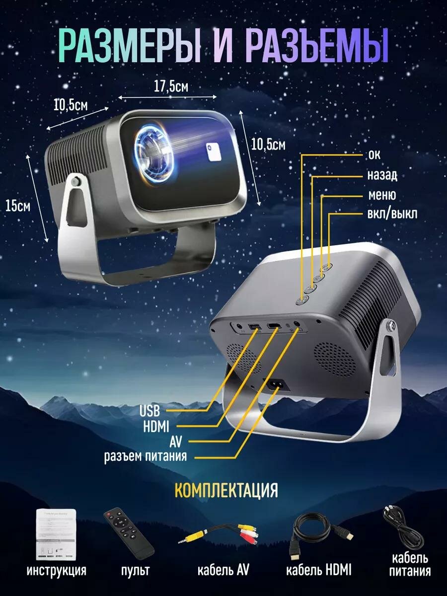 Проектор X8 PRO HD 720p с Android TV, Портативный Smart-проектор с Wi-Fi 5G, HDMI, Серый