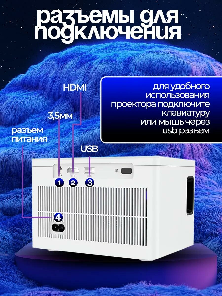 Проектор для дома и офиса/ Smart проектор Full HD / Wifi 5G / Проектор для просмотра фильмов/ Видеопроектор, Белый, WinStreak