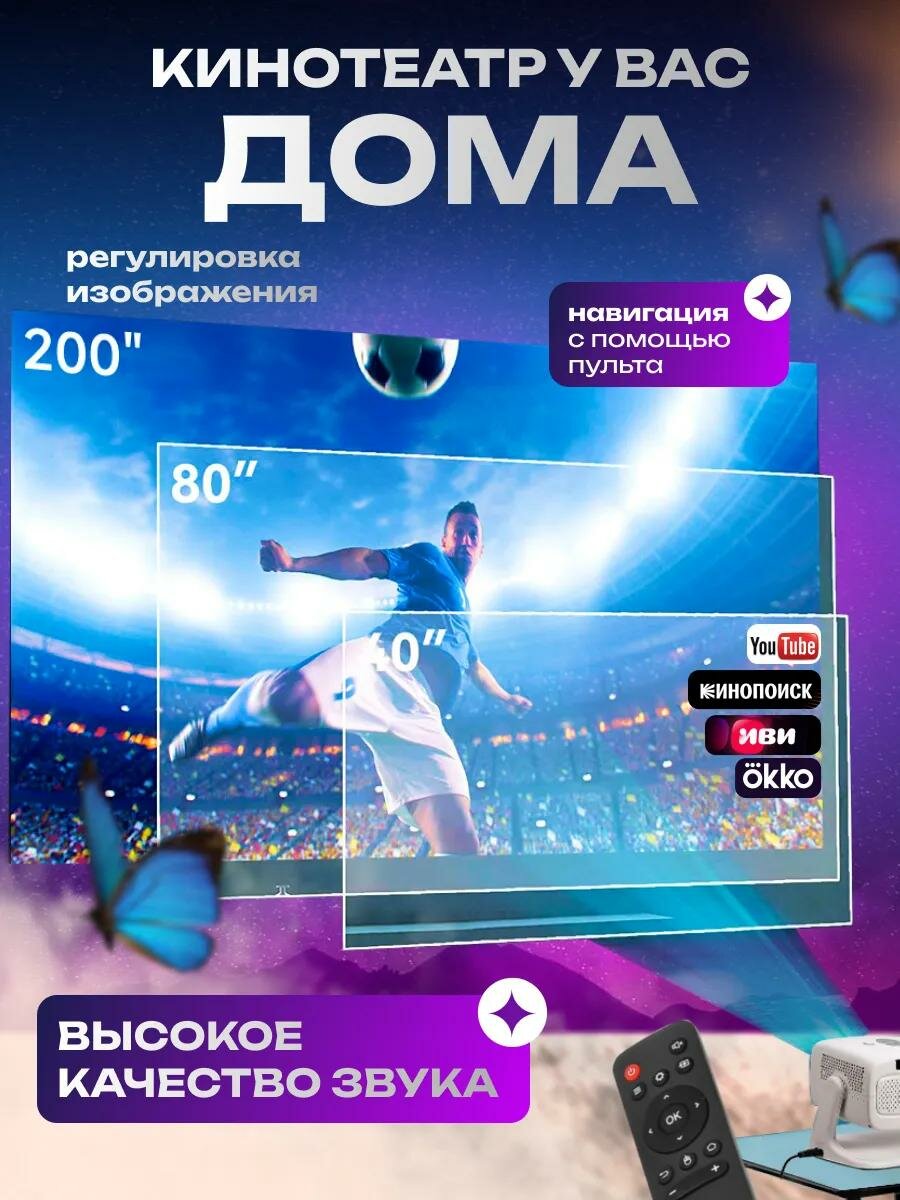 Проектор для дома и офиса/ Smart проектор Full HD / Wifi 5G / Проектор для просмотра фильмов/ Видеопроектор, Белый, WinStreak