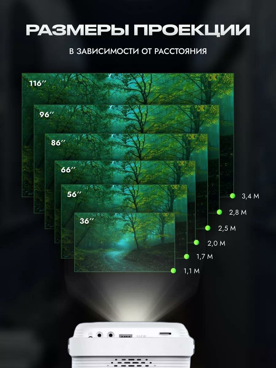 Проектор для дома и офиса/ Smart проектор Full HD / Wifi 5G / Проектор для просмотра фильмов/ Видеопроектор, Белый, WinStreak