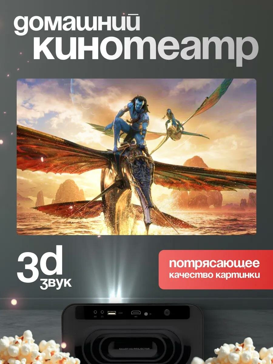 Проектор A008 – домашний кинотеатр, Smart TV, Wi-Fi, Full HD, LED, для фильмов, видео, игр, Черный