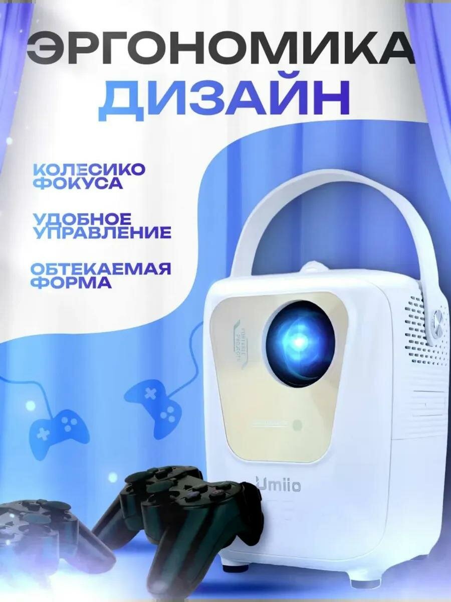Проектор Umiio U8 PRO Full HD 1080p Android TV, Портативный Smart-проектор с Wi-Fi 5G, HDMI, Белый