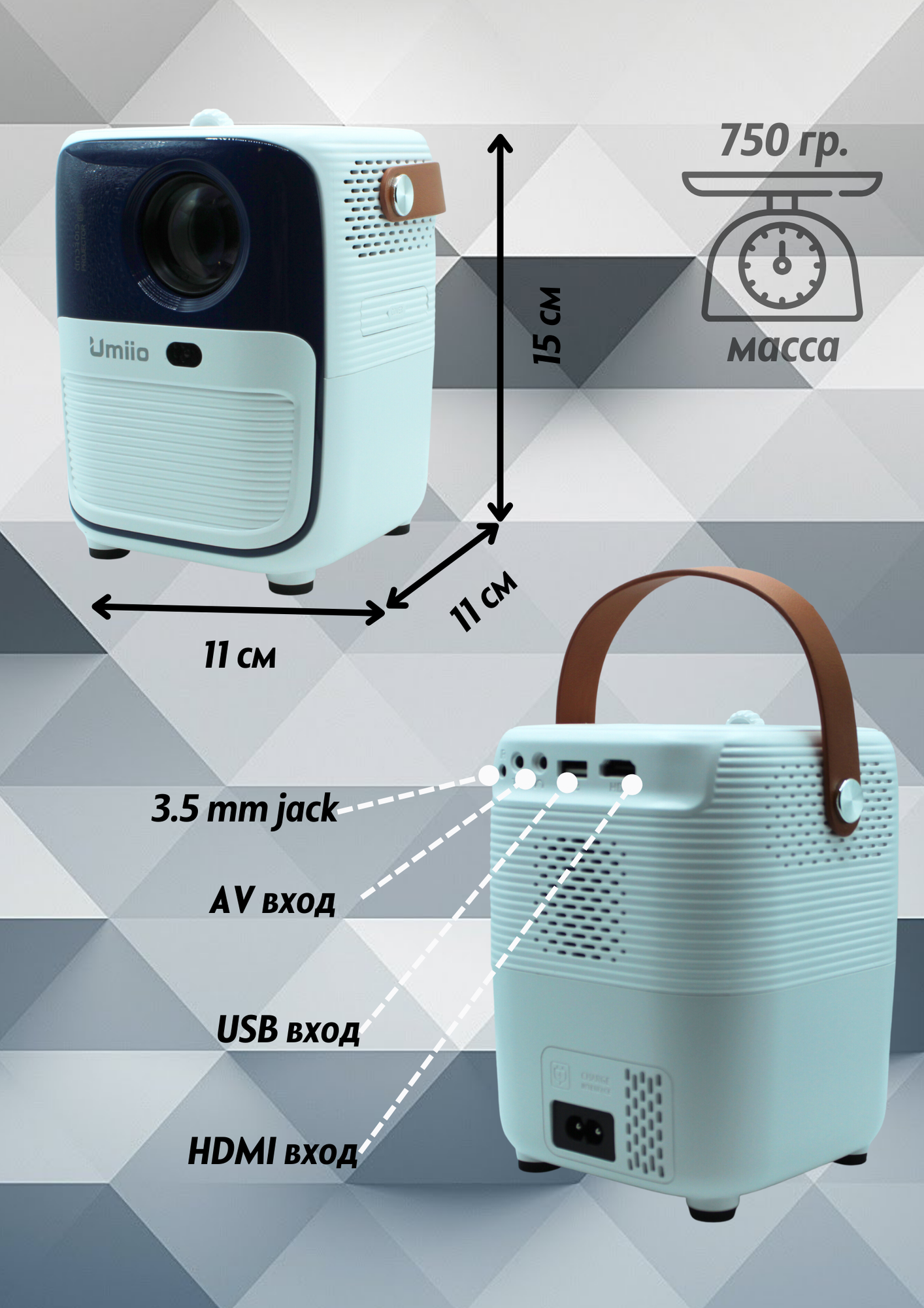 Проектор Umiio / Портативный проектор / Мини проектор Umiio / Full HD Android TV / Черный / Family Store Home