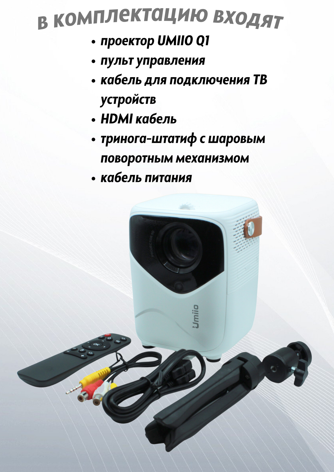 Купить Портативный проектор, для домашнего кинотеатра, Bluetooth, WI-Fi, Full HD с русским языком, Umiio Q1, белый