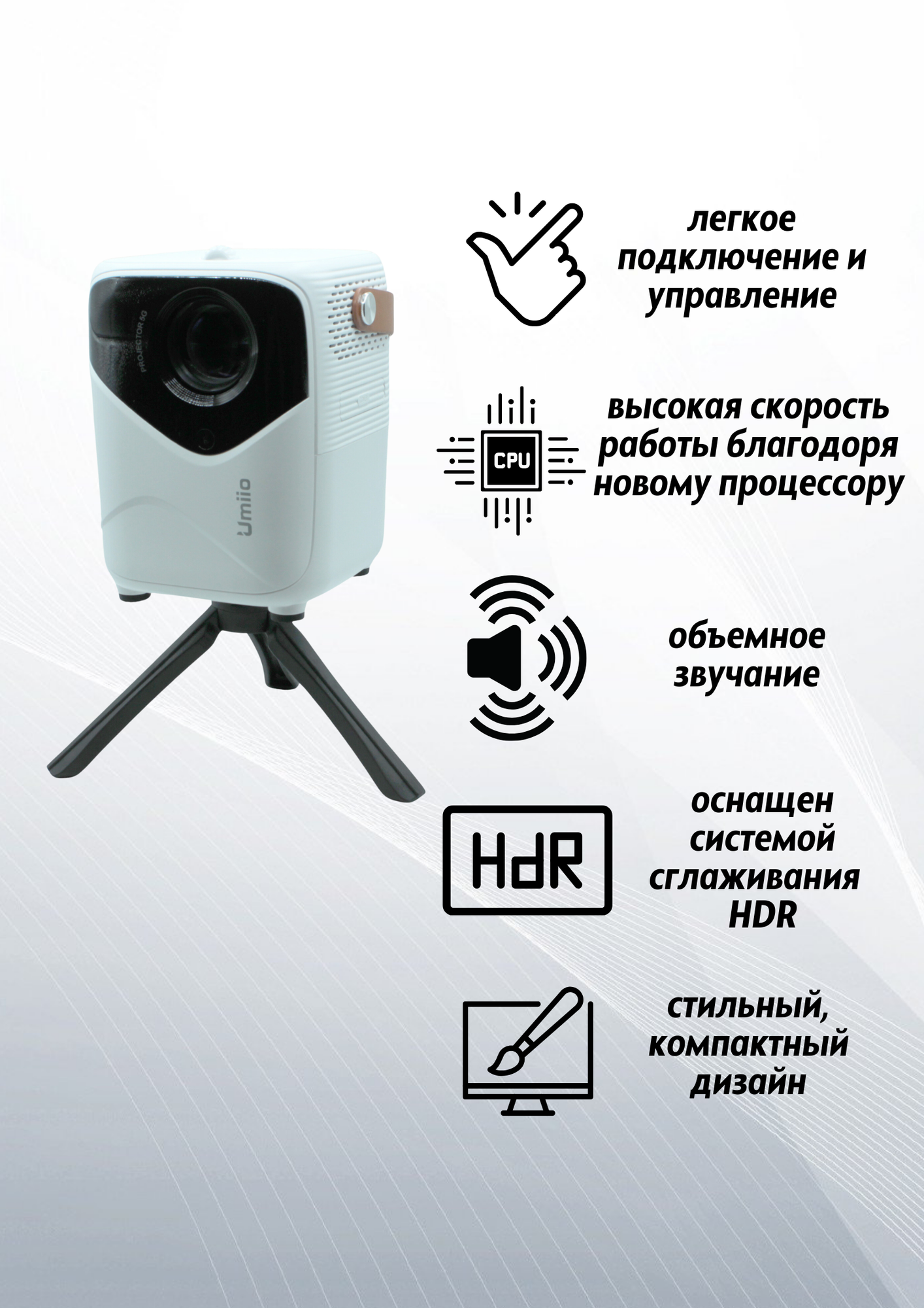 Портативный проектор Umiio A008 , WiF i , Android TV , Белый