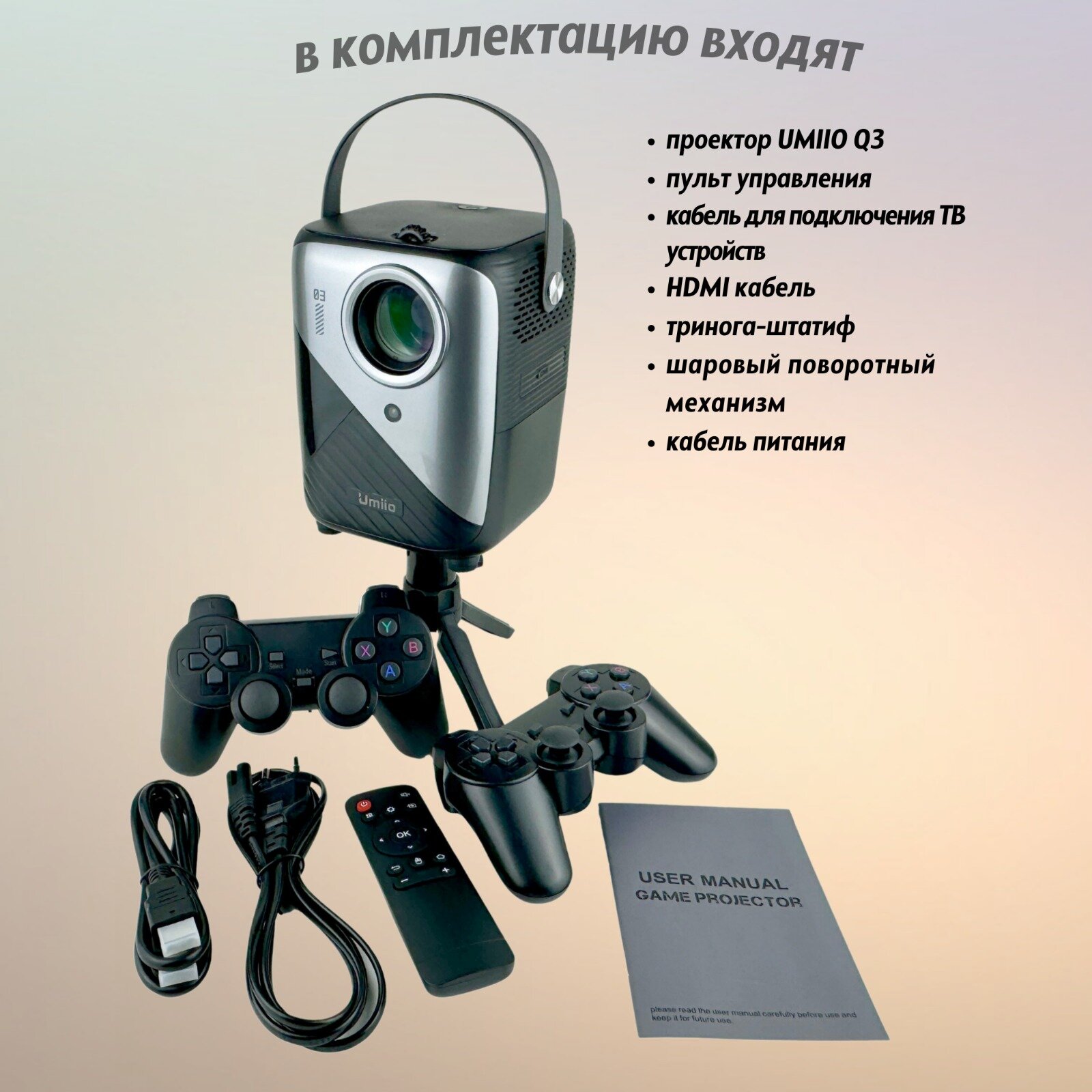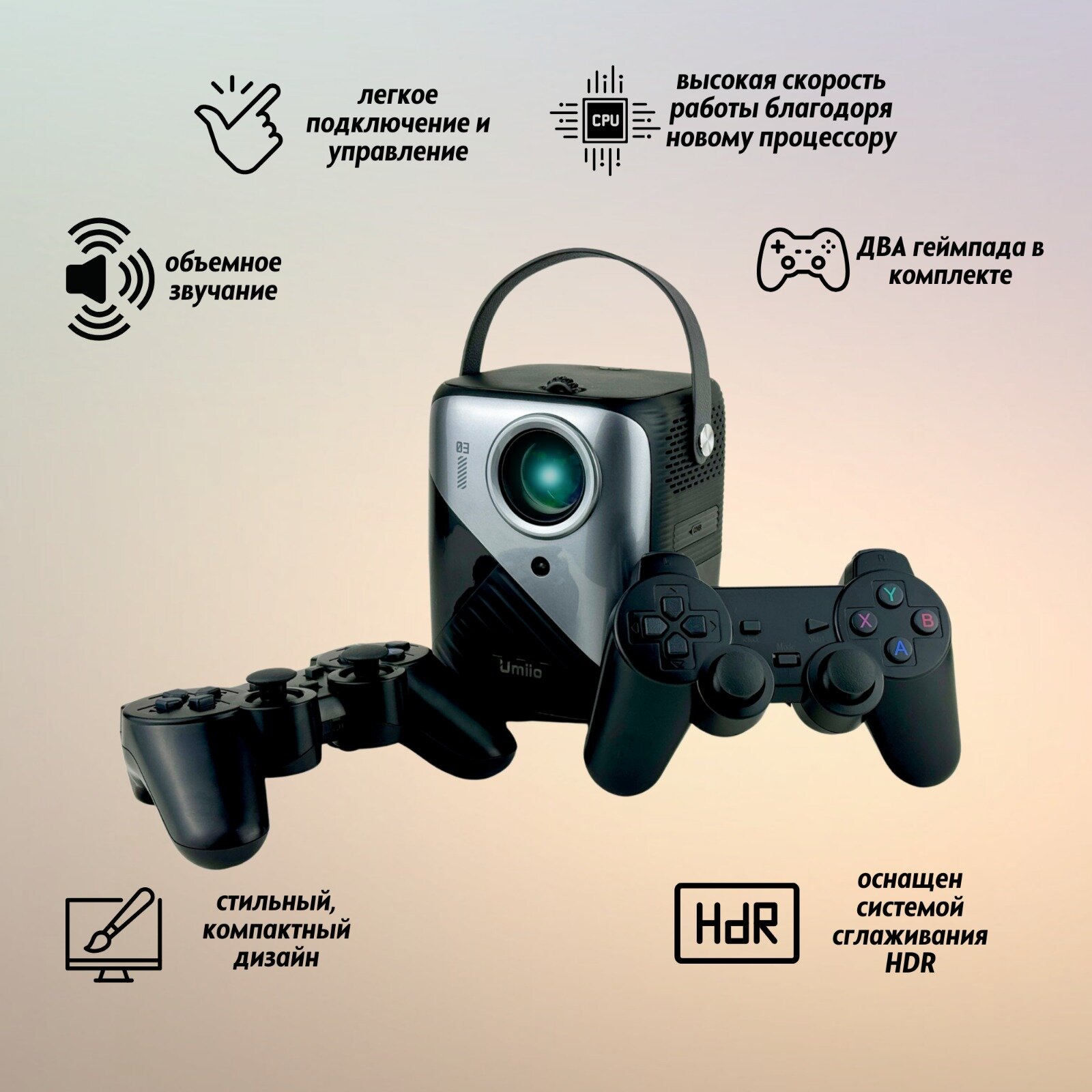Купить Проектор игровой Umiio Q3 Pro, Full HD, с геймпадами, Wi-F, HDMI, LED лампа, черный