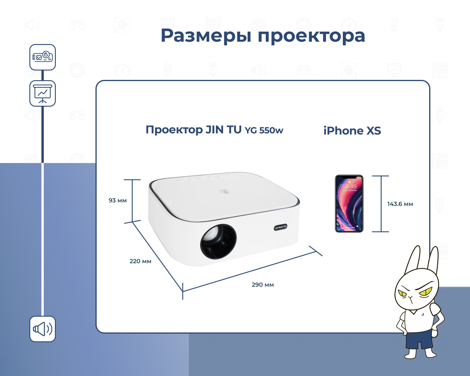 Мультимедийный проектор JIN TU YG550WA, 1920x1080, Android, Bluetooth, Wi-Fi 550 ANSI, белый интересное: