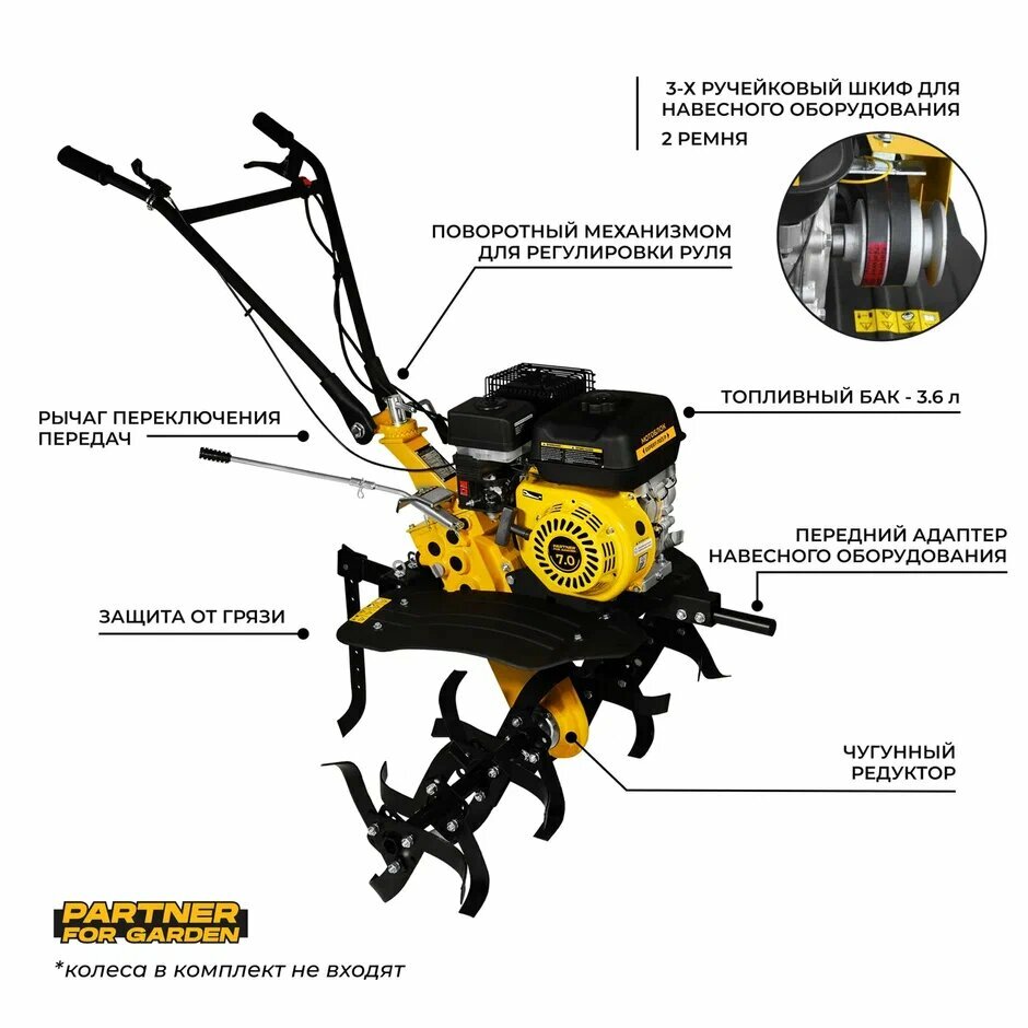Мотоблок / Мотокультиватор Partner for garden EXPERT-70 ( 7 л.с., 120 см , 2 вперед / 1 назад, чугунный редуктор колеса В комплект НЕ входят )
