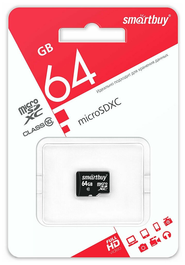 Карта памяти SmartBuy microSDXC 64 ГБ Class 10, R/W 20/17 МБ/с