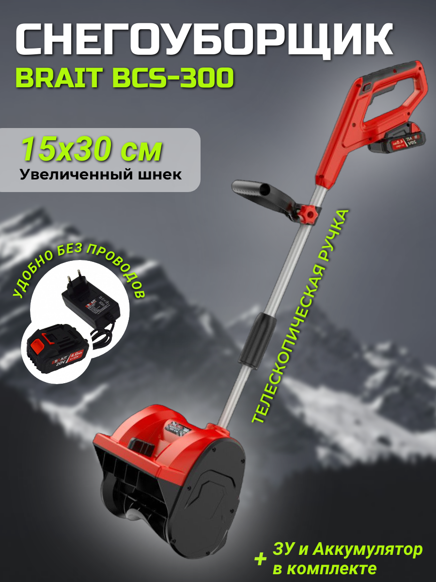 Купить Снегоуборщик аккумуляторный (снегоуборочная лопата) BRAIT BCS-300