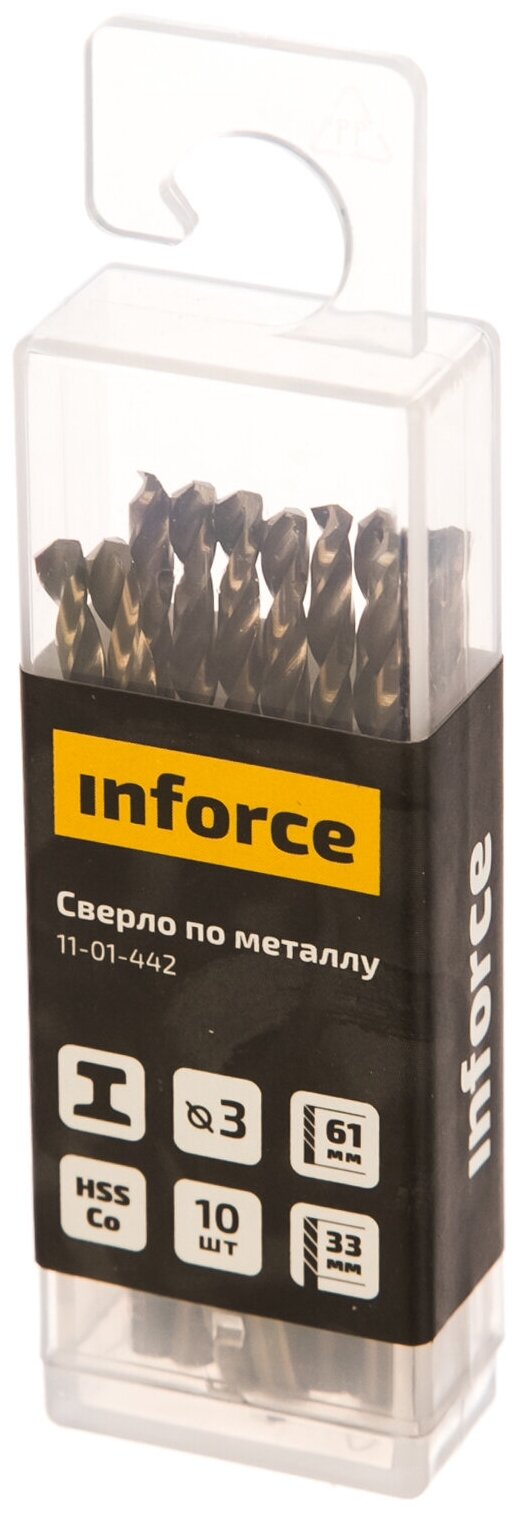 Inforce сверло по металлу HSS-Co 3x61мм 10 штук в упаковке 11-01-442