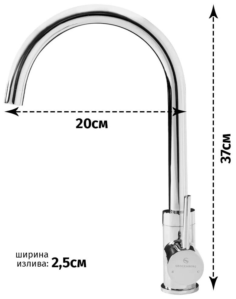 Смеситель Grocenberg GB40040, для кухни, латунь, поворотный излив, аэратор интересное: